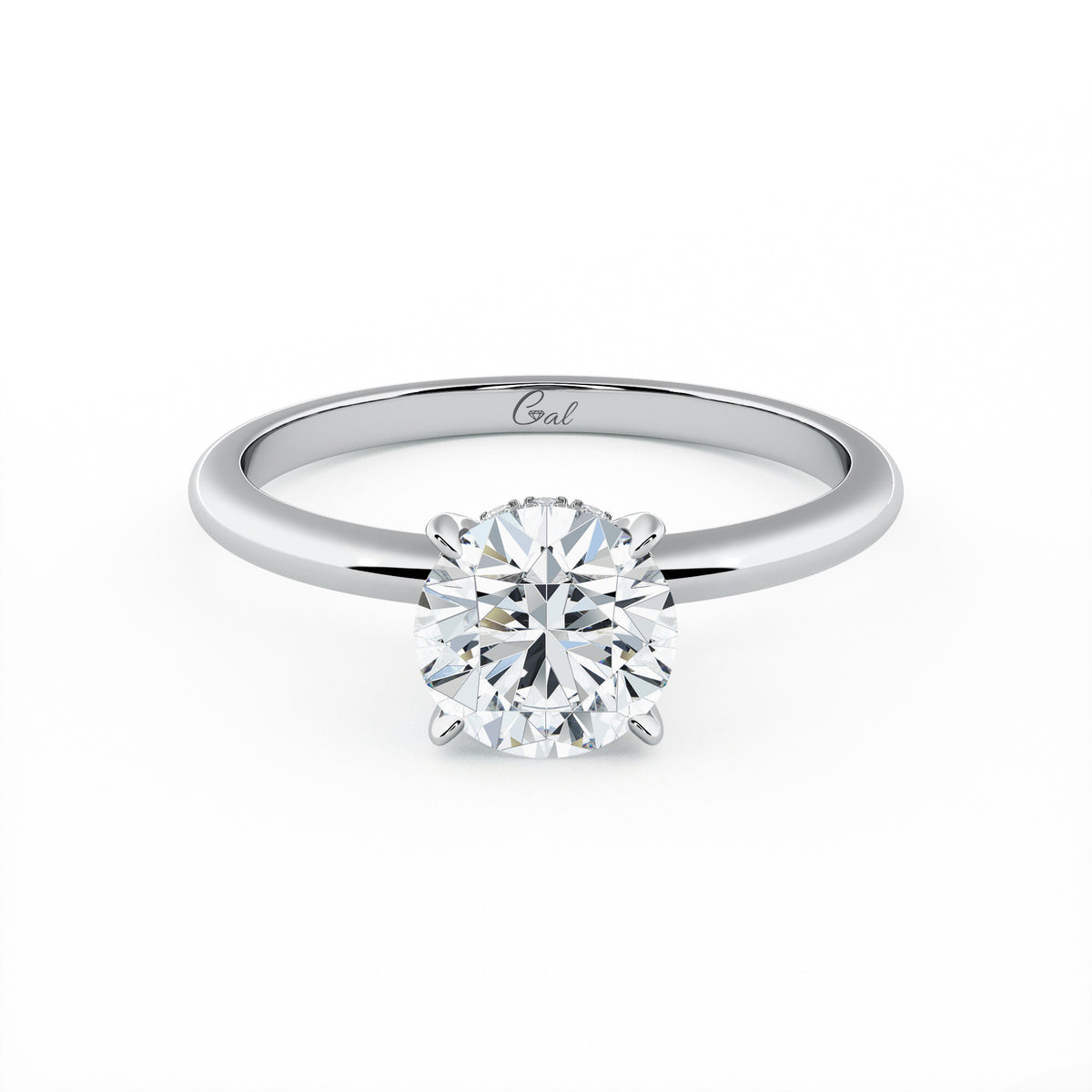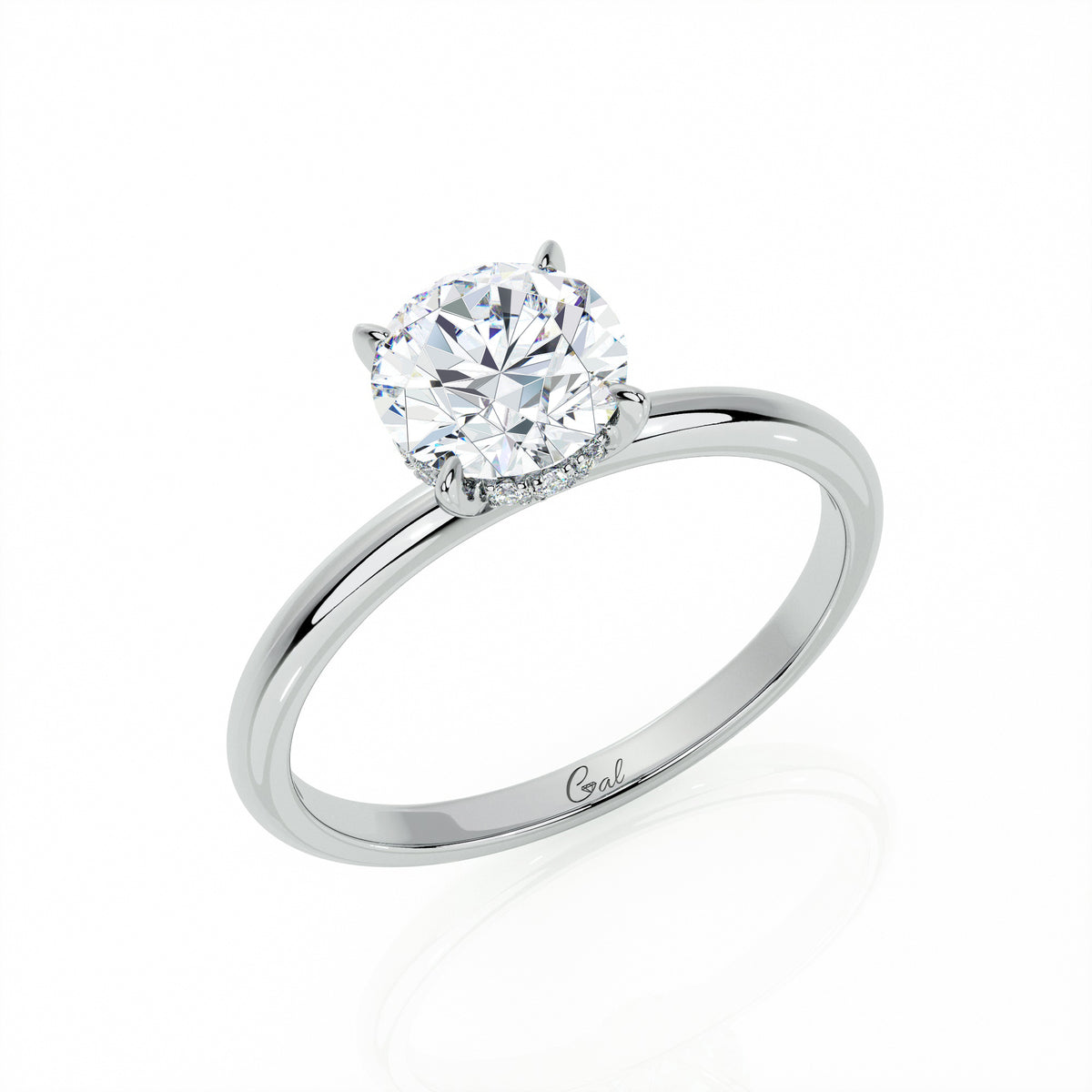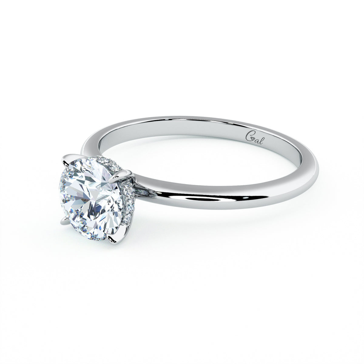 A classic Gal Diamonds signature solitaire design. This ring features a 1.00 carat Round Brilliant diamond set in a solitaire hidden halo.Handcrafted in 18K gold.